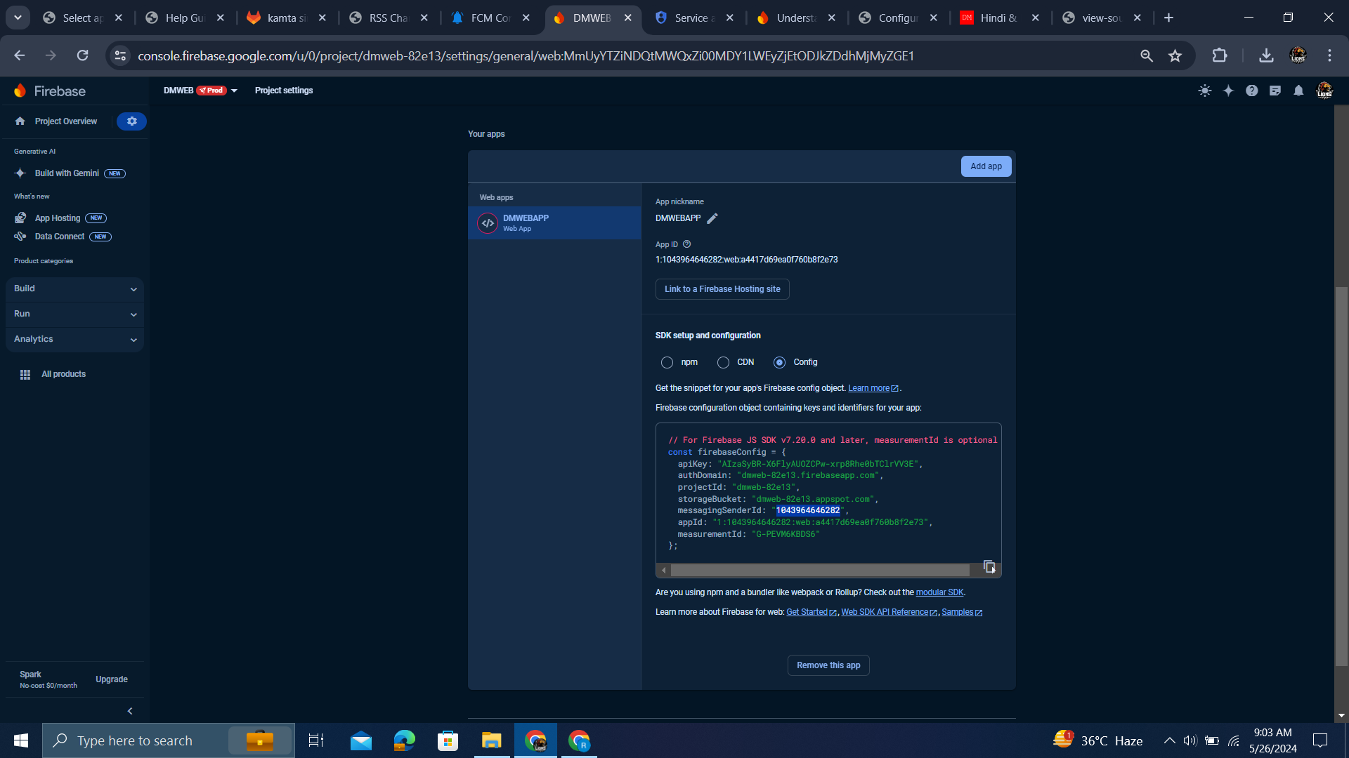 Copy and Paste firebase config Variable values